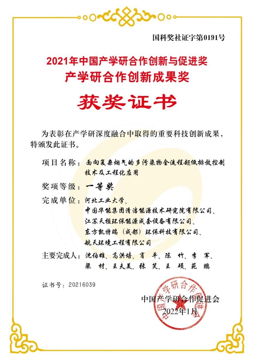 近日,東方凱特瑞參與由河北工業(yè)大學牽頭申報的《面向復雜煙氣的多污染物全流程超低排放控制及工程化應用》項目被國家一級協(xié)會——中國產(chǎn)學研合作促進會評為“產(chǎn)學研合作創(chuàng)新成果一等獎”。