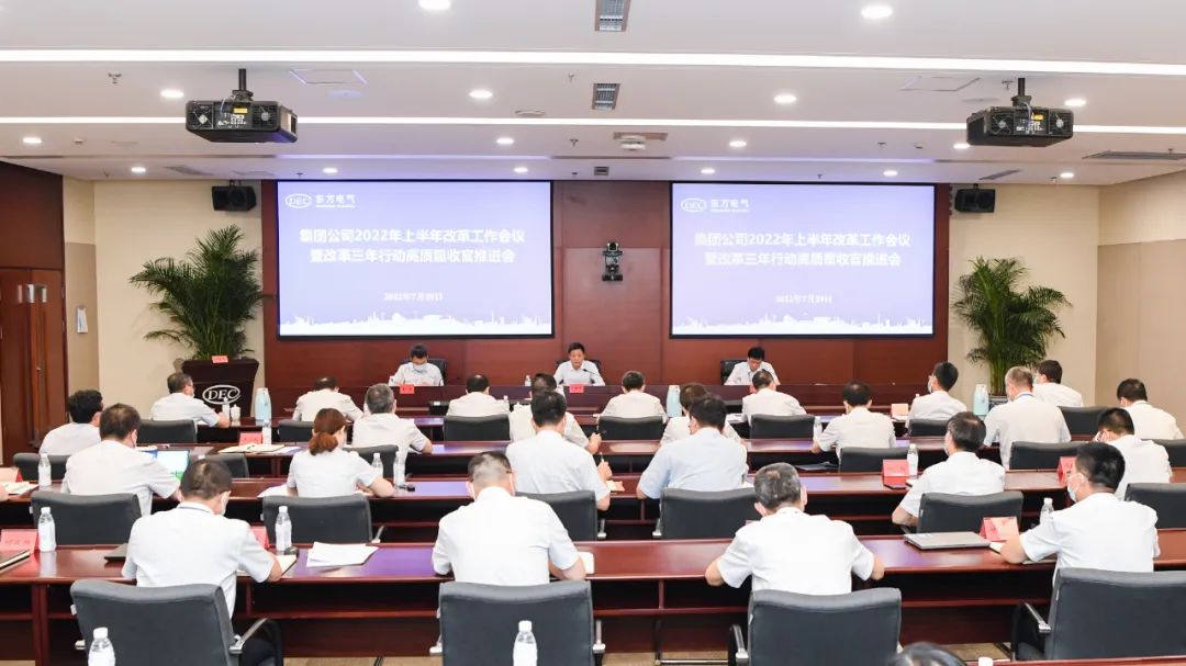 本網(wǎng)訊 7月29日,東方電氣集團(tuán)召開2022年上半年改革工作會(huì)暨改革三年行動(dòng)高質(zhì)量收官推進(jìn)會(huì),深入貫徹落實(shí)國資委關(guān)于國企改革三年行動(dòng)高質(zhì)量收官?zèng)Q策部署,總結(jié)上半年改革工作推進(jìn)情況,對集團(tuán)改革三年行動(dòng)高質(zhì)量收官進(jìn)行專題部署。集團(tuán)公司黨組書記、董事長俞培根出席會(huì)議并講話,黨組成員、副總經(jīng)理張繼烈主持會(huì)議。